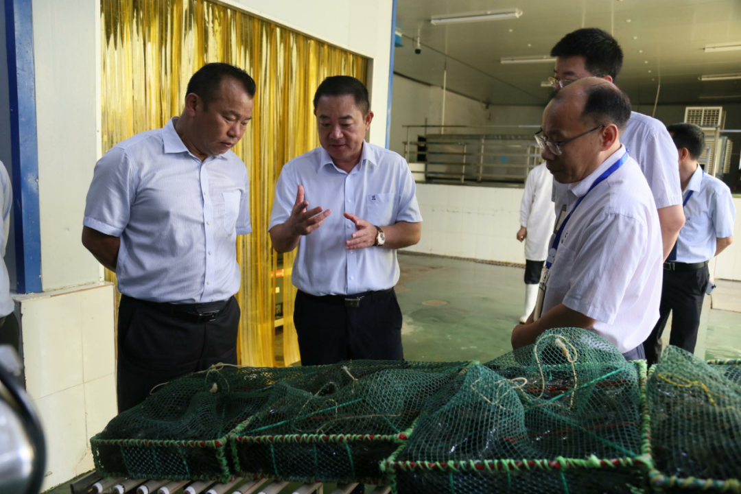 幻影app最新版下载朱长良先生和幻影app最新版下载研发中心负责人徐亮先生抵达翔泰公司后,在翔泰董事长刘荣杰及相关人员带领下参观化验室、一楼展示厅、工厂及饲料厂以及熟虾生产。